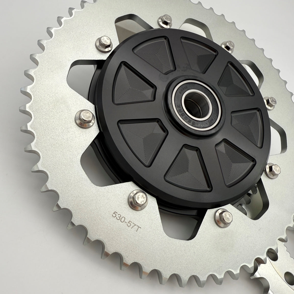 Offered in two combinations: 24/51, 25/54 and 27/57, the new 27/57 kit eliminates the need to modify the inner primary. These kits require a 530 type of chain, cut to length (not included).